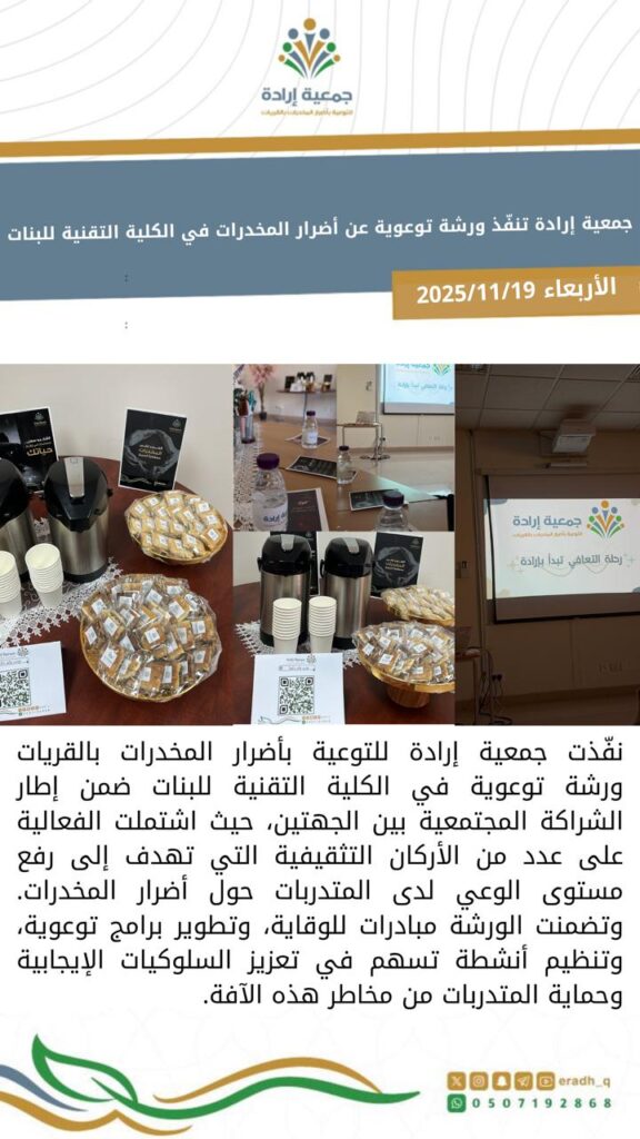 جمعية إرادة للتوعية بأضرار المخدرات بالقريات برقم (1546)