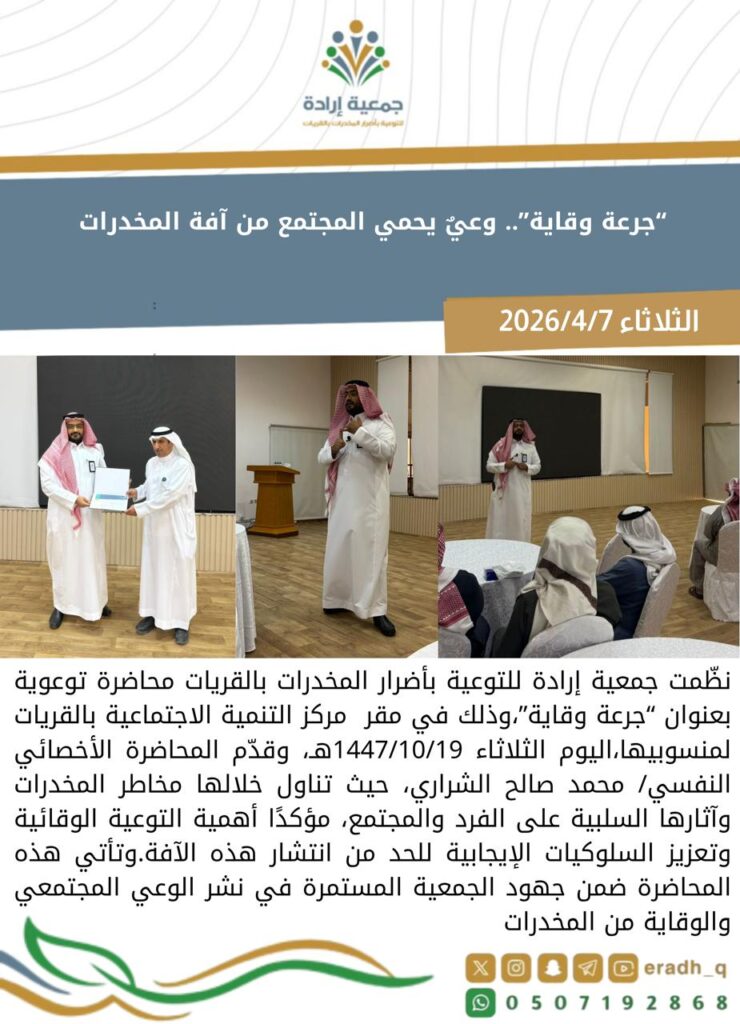 جمعية إرادة للتوعية بأضرار المخدرات بالقريات برقم (1546)