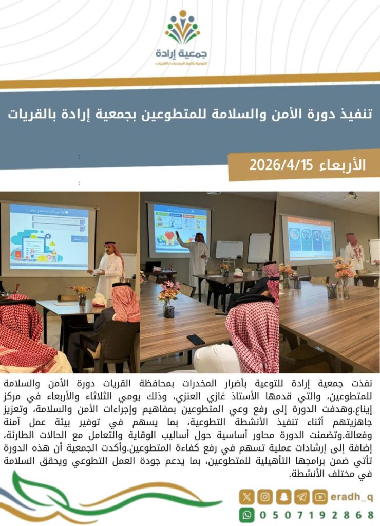 جمعية إرادة للتوعية بأضرار المخدرات بالقريات برقم (1546)